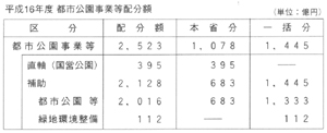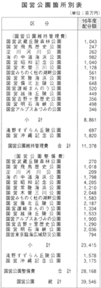 平成16年 国営公園箇所別表 都道府県別配分額 |