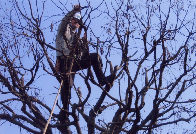 午後から講師によるイチョウの見本剪定と解説、受験者によるエンジュの剪定実習を行った。