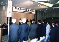 議事では、平成18年度事業計画(記事2面)など、7議案が審議・承認され、途中の臨時理事会を経て、佐藤四郎氏が新会長に選任。退任、着任のあいさつが行われた(別掲)。