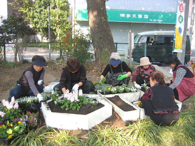 開催当日は、メイン会場にて高村副会長、赤崎支部長が参加者の皆様に対し、イベントの趣旨説明や御礼を申し上げ、続いて公園内のゴミ拾いを愛護会の方々と我々会員企業とで行い、プランターに様々な花を植え付けるなど、公園の美化活動を行いました。他にも園芸相談や管理方法の説明など僅か2時間足らずの短い時間でしたが、充実したイベントとなりました。
