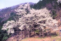 兵庫県養父市大屋町樽見にある幹周り5.15m、樹高13mの兵庫県で最大のエドヒガンザクラで、国の天然記念物に指定されている。いつの時代に植えられたかは不明だが、地元の人々が神の木として大切に保存し、樹齢は1,000年を超え、地上2mのところから数幹にわかれており、大きく伸びた枝は支柱に支えられながらも毎年美しい淡紅色の花をつける。また、江戸幕府生野代官所と出石藩の領地との境界木であったともされ、出石藩・仙石小出備前守が、その大きさと見事さから“仙桜”と名付けたといわれている。 (写真提供:兵庫県) |