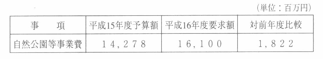 環境省の平成16年度自然公園等事業関係予算概算要求は国費161億円で対前年度は12・8%増となっている。その目的と事業概要は次のとおり。