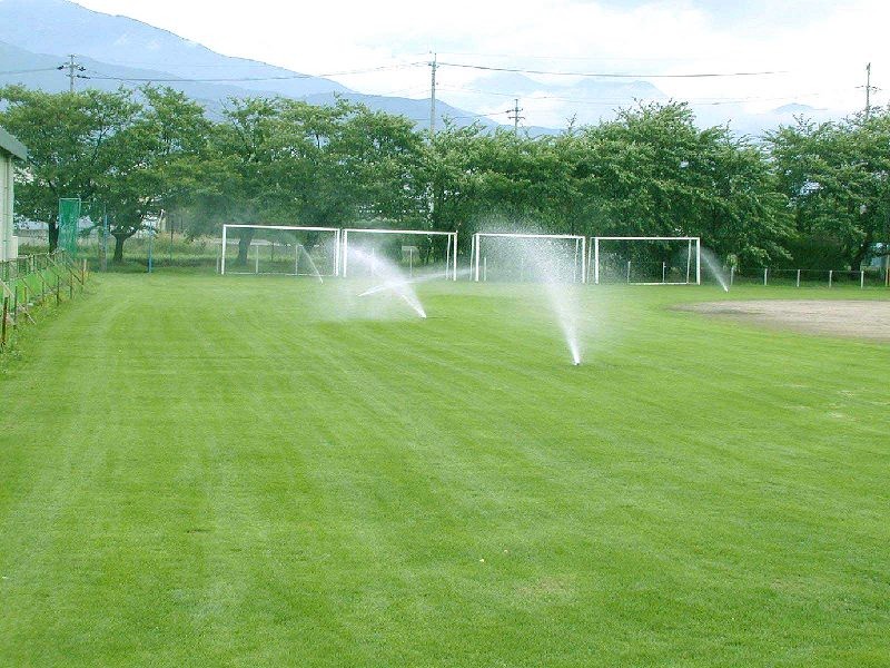 三郷小学校の芝生は、この散水設備の経験が生かされて同様の方式で散水が出来る。ただし、コンピュータ制御システムは備わっていない。