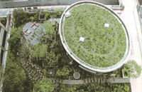 それでは、なぜ、今になって屋上緑化の注目度が高まってきているのか―。その大きな契機となったのが、東京都による建築物緑化の義務付けだろう。 都では、深刻化するヒートアイランド現象に歯止めをかけるために、平成12年に「緑の東京計画」を発表、このなかで平成13年度から27年度までの15年間で1200haもの屋上緑化面積を確保することを打ち出した。 翌年4月には、敷地面積1000㎡以上の新築・改築・増築ビルに対し、緑化可能な屋上面積の20%以上を緑化することを義務付ける条例を施行、建築業界を中心として屋上緑化に対する関心が高まった。 東京都の義務化に続き、兵庫県でも平成14年から建築面積1000㎡以上の新築ビルに対し、20%以上の屋上緑化を義務化している(市街化区域内に限る)。その他の自治体でも、助成制度を創設するなど、屋上緑化の普及促進に向けた取り組みが活発化してきている。 東京都によると、平成14年度における屋上等緑化指導実績は、義務付け初年度の平成13年度に比べて増加傾向にあるという。全体の緑化面積は前年度比23%増の12万8479㎡で、このうち屋上緑化面積は同9・9%増の7万5000㎡であった。着実な増加傾向にはあるものの、「15年間で1200ha」という目標を達成するには、これまで以上の普及スピードを高めていく取り組みが求められることになりそうだ。 都では、屋上緑化の義務化に関する条例の見直しを検討しようとしており、今後、緑化の質に応じた基準の創設や免責要件の強化などが行われる公算が高いと見られている。