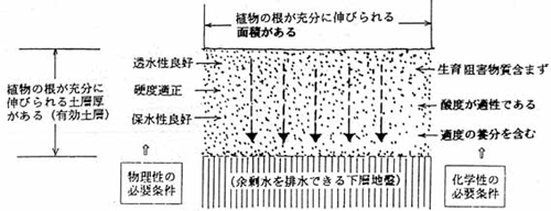 植栽工事での植栽樹木の枯損や生育不良の原因の中で、最も多いと推測されているものが植栽地の地盤不良である。