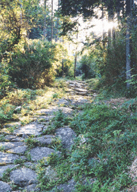 海山町と尾鷲市の境をなす峠。一面にソダを敷き詰めた尾鷲桧の美林の中に、約2㎞にわたって苔むした石畳がつづく。