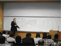 質疑応答では、具体的な花壇植栽のテクニックを図解しながら詳細な解説が行われ、花期の終った草花を花壇の中でどのように扱うのかなどいろいろなヒントが伝授された。