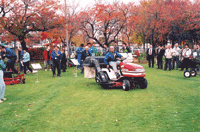 三郷小学校のグランドでは、芝刈り機器の実演も行われ、また会場入口では、安曇野のりんごやワイン、お菓子なども販売され地域経済への波及も模索された。