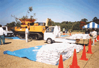 第41回技能五輪全国大会「技能五輪にいがた ゆめ・技・モノがたり2003」が10月24日から27日まで、県内・朱鷺メッセなど6会場で開かれ、34職種、974人が参加。職人技を堪能しようと訪れた見学者は12万人を超えた。 このうち、造園職種では、当協会員から4氏が入賞。金賞の厚生労働大臣賞・井手隆一氏(21歳、大川内造園㈱・佐賀県伊万里市)、銀賞・浦野幸裕氏(㈱皆楽園・熊本県)、銅賞・前山幸輝氏(㈱旭日緑化建設・佐賀県)、敢闘賞・池端潔氏(伊勢造園建設㈱・熊本県)が受賞の栄に輝いた。 |