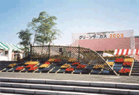 秋晴れ空の下、10月25日、26日に京都府立山城総合運動公園(太陽が丘)において、近畿都市緑化祭。みどりの5団体合同フォーラムが開催された。(社)日本造園建設業協会近畿総支部をはじめ、みどりを通じて豊かな環境づくりを日々、考え、創ることを目指す5つの専門団体が、それぞれの “みどりの専門家 ”として個性を出し合いながら “憩う・遊ぶ・触る・食べる・学ぶ・創る ”をテーマに、暮らしの中にある身近なみどりを実感できるみどりのフェスティバルです。 “グリーンサーカス2003 ”と銘打ち、第3回目を迎えた今年は「根のある・実のある・みどりのくらし」をスローガンにみどりへの関わり方を専門家から提案、技術力をアピールすることにより市民、事業者、行政等広くみどり意識を高め深めることを主眼としました。