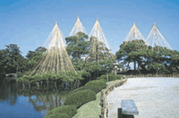 毎年11月の声を聞き遠く白山の頂きに新雪が輝く頃、県内の造園業者の周辺が慌しくなる。ご存知のごとく、冬の積雪から、樹木を守るための雪吊りや雪囲い作業が始まるためである。 兼六園では、「唐崎の松」をはじめとする名木が25メートルを超える梢の更に上から、800本以上の縄で傘状に覆われ、葉の緑と縄の白さが得も言えぬコントラストを醸しだす。また、市内の武家屋敷の土塀を藁で覆い、凍結によるひび割れを防ぐ「こもかけ」作業もぼちぼち始まる。奥能登輪島の民家では海の寒風から家を守るため、周囲を真竹や苦竹で囲う「間垣」造りも急ピッチで進む。12月ともなれば能登の海岸には海鳴りがとどろき、岩棚に白い「波の花」が幽玄に舞い踊る石川の冬が訪れる。