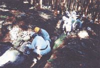 21世紀は環境の時代といわれ物質的な充足から、精神的充足・自然的充足の時代へと変化しているなかで、四国地方では “癒しの道整備 ”として、「遍路みち」の整備がここ数年耳にするようになってきた。 そこで、四国総支部では平成15年度より「遍路みち」の整備を事業として取り組むこととした。 初年度は徳島県支部担当で徳島県神山町内において実施した。現場は最後まで残った空海の道(1200年前の空海が歩いた自然がそのまま残る「遍路道」心いやされる新四国のみち)といわれる、第11番藤井寺から第12番焼山寺までの間で、歩き遍路で一番の難所(へんろころがし)といわれるところの200mの区間を10月22日・29日の2日間おこなった。 現地は、自然石が点在し深掘れして非常に歩きにくい状態にあった。