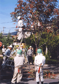 今回(平成15年11月)その実りがあって、支部部会として、街路樹剪定士指導員部会を設立(規定を設けた)させた。部会は、都支部所属の講師(5人)と指導員(10人)及び技術委員長によって構成し組織された。