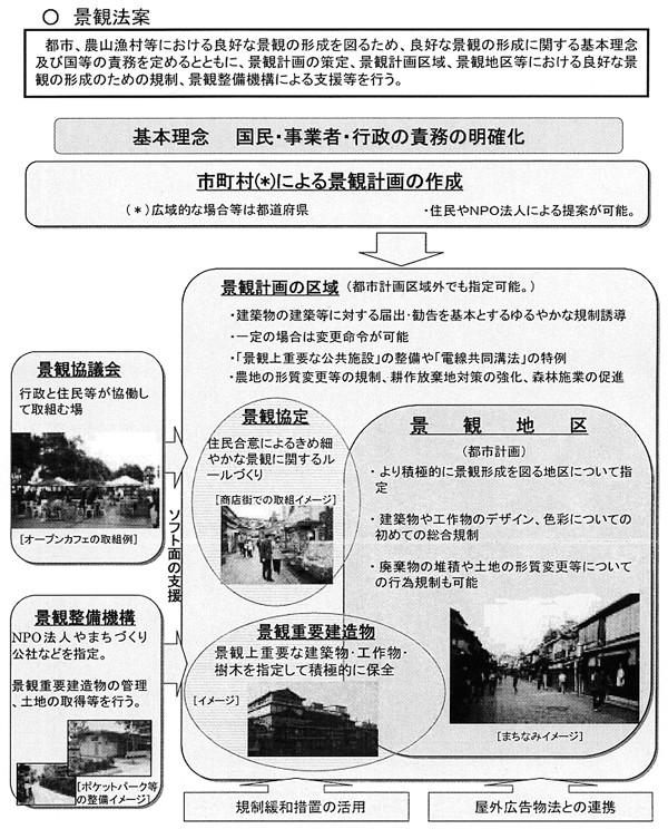 景観計画区域内における良好な景観の形成を図るための協議を行うため、景観行政団体等は景観協議会を組織することができることとし、景観協議会で協議が整った事項については尊重しなければならないこととする。