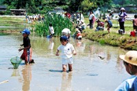 兵庫県の北部、日本海に面した豊岡盆地で、30年以上も前に日本の空から姿を消したコウノトリを再び自然の中に帰していく取り組みが展開されている。一度、自然界から消滅した種をかつての生息地に復帰させることは世界的にもまれで、成功例は極めて少ない。そればかりか、ここでの取り組みは、単にコウノトリという一つの種を蘇らせるだけでなく、コウノトリのような自然生態系の頂点に立つ大きな鳥が生息できる環境こそ人間にとって豊かな環境であるとの認識のもと、人と自然が共生する社会の実現を目指している。「壮大な社会実験」と呼ばれるコウノトリ野生復帰プロジェクトの一端を紹介し、「ふるさと自慢」としたい。