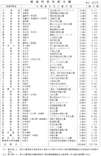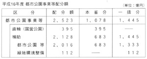 平成16年 国営公園箇所別表 都道府県別配分額 |