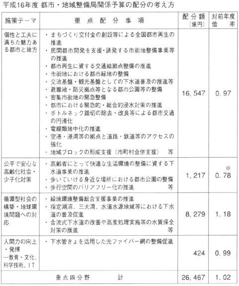 平成16年度都市・地域整備局関係予算 都市公園事業等2,523億円を配分 |