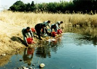 農村風景の一つである「ため池」が、最近、宅地化に伴う生活雑排水の流入による悪臭・汚濁等で深刻な環境問題となっている。6日造協宮崎県支部・西都地区部会では西都市都市計画課の指導のもと、市内三宅地区にある「稚児ケ池(面積35700㎡)」の水質浄化作戦に取り組んでいる。 宮崎県の中部に位置する西都市は古代、日向における政治・文化の中心地として栄え、日本最大の規模を誇る古墳群を始め貴重な文化遺跡も多い。本年4月25日には、天皇・皇后両陛下をお迎えして、第55回全国植樹祭が「西都原古墳群特別史跡公園」、「向陵の丘」を会場に開催される。 西都原古墳群特別史跡公園に隣接する稚児ケ池の水質浄化には、有用微生物群(EM)活性液を投入する。 EMは、人間の体内に住む乳酸菌、光合成細菌、酵母などのように、動植物の細胞を活性化する働きをもつ酵素や生成物を作りだす微生物で、化学肥料や農薬による土壌汚染を防ぐ効果が得られるという。 EM液投入の半年後には悪臭・汚濁が半減し、大腸菌も8000から2000に激減、魚の姿も確認できるようになった。また、冬には鴨の群れも見られる。 |