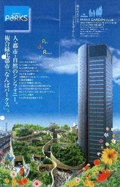 そこで、なんば駅に隣接する形でホークスファンにはご存知の旧南海ホークスのホーム球場でありました大阪球場跡地(3・7ha)に「難波再開発A―1地区開発」を進め、関西国際空港とのアクセスの良さを利用し、世界に開かれた玄関口として平成15年10月7日、人と自然がやさしくふれあえる環境「未来都市なにわ新都」が既存南海ターミナルビル(30ha)と合わせ延べ床面積約100万㎡の街を作り、そして高次元都市機能の集積を図り21世紀大阪の「なんばパークス」で3・7haの広さで、オフィス・ショッピング・レストランそして屋上庭園などこれまでになかった「なんば」のリーディングプロジェクトが発進しました。