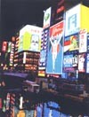 昭和初期には赤い灯、青い灯とうたわれた戎橋付近のネオンはいまも健在。夜の大阪の賑わいの演出ともなっている