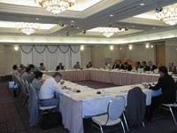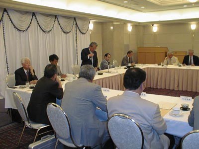 平成16年度第1回総支部長会議(写真・左)および第2回臨時理事会(写真右)は7月21日、東京・千代田区麹町のルポール麹町で開催した。 |