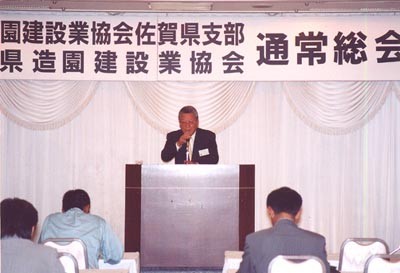 県業界の実態も、平成7~8年頃のピーク時に比べて受注量は半減しており明るい展望が開けず苦慮している。ところで、先般、我が国で初めての景観と緑に関する法律いわゆる「景観緑三法」が成立したことは、景観と緑環境の共生をめざす我々造園業界にとって喜ばしいことだ。私共は、これを契機としてこれまで蓄積してきた技術・技能や知識を発揮できる場が与えられたことになる。また、一方、県においても昨年、新しいリーダーとして古川知事を迎えて「変革と創造の佐賀づくり」を掲げられ「立県改進」の精神のもと「癒しに満ちた環境の先進県」の実現に向けた決意が強くうかがえる。