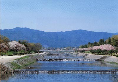 東西約10㎞、南北約20㎞の細長い盆地の三方を、屏風のように囲む山々は、北西の愛宕山と北東の比叡山が双峰をなして聳(そび)え、その北方には標高6、7百mの峰々が峡谷を刻み、東山と西山のなだらかな山並みに続いている。