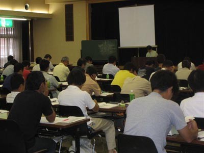 3日間の座学では、第1部から第4部まで10名の講師がそれぞれ分担し、修了試験の立会いや採点には8名の認定講師が対応。8月28日に行った記述式問題の採点は各支部より10名の講師が参加しました。