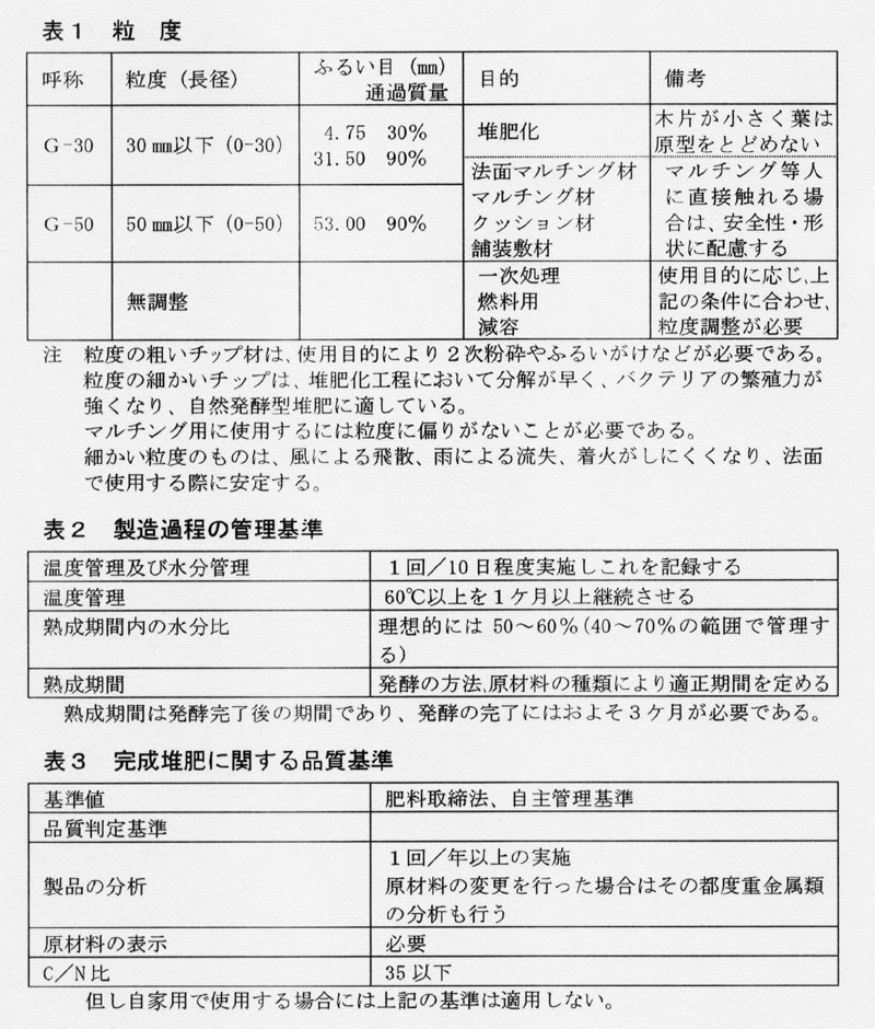 当協会は、みどりのリサイクルに関して、「チップ及び堆肥の特記仕様書(案)」(チップ及び堆肥化のガイドライン)を発表した。