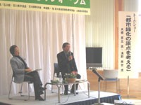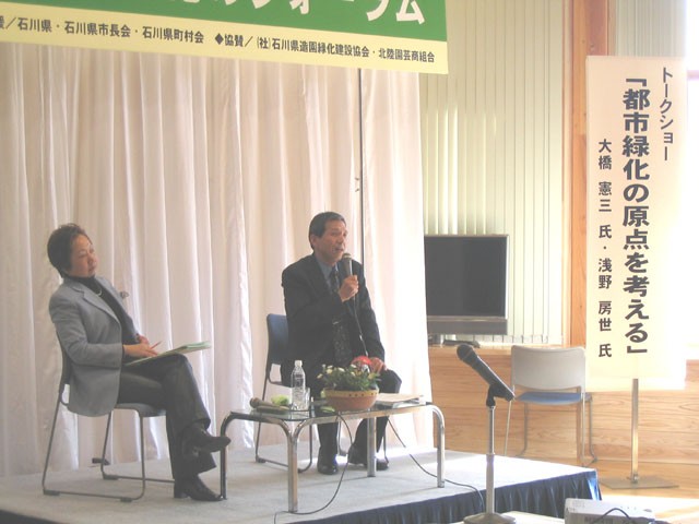 (財)いしかわ緑のまち基金が主催し、石川県、当支部及び(社)石川県造園緑化建設協会が協賛する「県民緑と花のフォーラム」が、昨年11月にオープンしたばかりの、白山ろくテーマパーク公園内休憩館で開催された。 この公園は、霊峰白山を源とする手取川の中流域一帯33・7haを園地とする広域型の都市公園として、平成6年8月に国の事業認可を受け着工現在も整備中である。完成のあかつきには、渓谷の奇岩や流れ落ちる滝を眺めながら清流をボートで下る川下り、森林浴を楽しみながらの散策、野鳥の森でのリフレッシュ等の自然と、フィールドアスレチックス、オートキャンプ場、野外ステージ等人工の施設が融和し、更に田園の広がるかなたに加賀一向一揆最後の城のある鳥越山を望むことができる。豊かな自然と歴史・文化に恵まれた「花・雪・人」のテーマにふさわしい公園が出現する。 このような環境の一角にある木の香も新しい建物で、早春の3月21日、第1部として淡路景観園芸学校の浅野房世氏を基調講演の講師に招き、「緑の癒し」をテーマに園芸セラピストの話を、第2部として当支部幹事で(社)石川県造園緑化建設協会副会長の中川茂氏が「校庭緑化」取り組みの事例の発表を企画したことは、まことに時と所を得たものであった。 柔らかな陽光の差し込む中、石川県内市町村から集まった「緑と花のまちづくり推進員」に一般参加の人々を加えた120名の聴衆は、熱心に話に聞き入り質問をし、2時間半の有意義な時間を過ごした後、花の苗のプレゼントを手に帰路についた。 (石川県支部 事務局) |