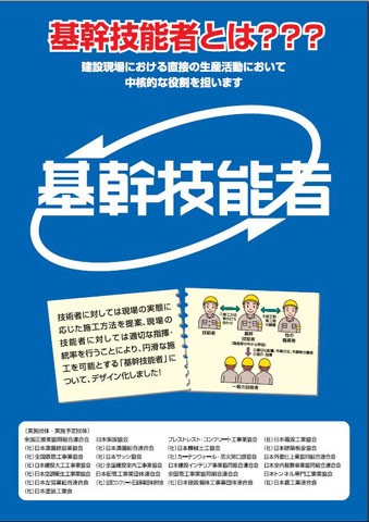 基幹技能者資格制度を運営する団体が連携して、基幹技能者資格の周知を図り、建設現場への有資格者の一層の活用と資格取得者の拡大を図るため、一般公募により統一のロゴマークを決定した。 このロゴマークを使用したポスターやパンフレットを作成し、公共団体やゼネコンなどの発注機関に配布している。 |