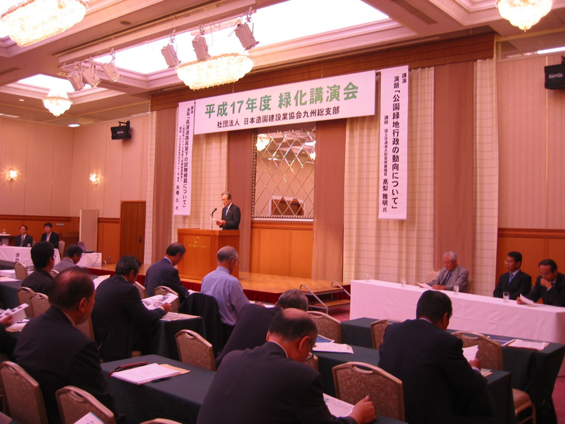 九州総支部では、第22回全国都市緑化福岡フェア記念事業として、緑化講演会を9月30日(金)、福岡市において開催し、国土交通省、福岡市、北九州市、久留米市の各行政機関並びに九州各県支部、造園関係団体の会員等、総勢180名が出席した。 |