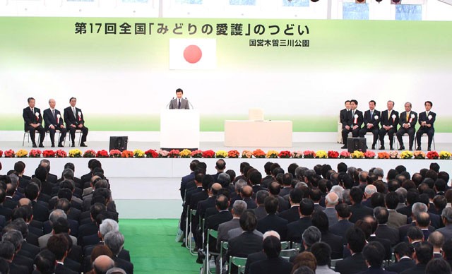 当日は、皇太子殿下御臨席のもと、公園緑地や河川の保全など、地域の緑化に取り組んでいる団体関係者約1600人が参加し、活動事例の紹介や功労者の表彰が行われた。