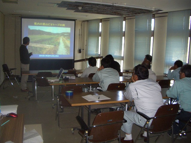 また併せて、県内で実際にビオトープとして作られた施設に対して映像を用いて具体的に解説していただきました。