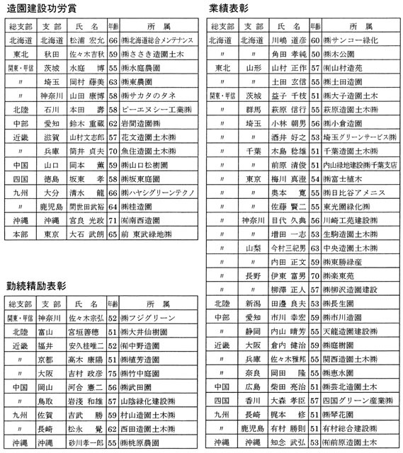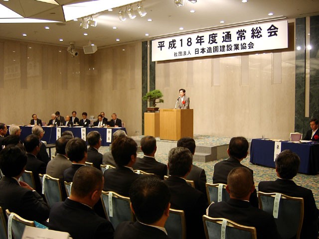 次いで来賓から国土交通省の小川陽一都市・地域整備局公園緑地課長が「都市公園法の施行から今年は50周年を迎え、自らの歳を重ねてみて、同じときを生きてきたものとしても感慨深く、昭和47年の都市公園整備推進5箇年計画のスタートなど、さまざまな変化もあった。また、都市公園法に加え、古都保存法制定40周年、国営公園制度発足30周年の記念すべき年である。特に古都の保存については、全国に貴重な歴史的風土が数多くあり、これを良い状態で、どのように次代に引き継いでいくかを具体的に考えていきたい。また、都市においては屋敷林や雑木林がどんどん失われており、こうした都市の緑の確保についても対策を図りたい。造園業を取り巻く環境は、依然厳しい状況といえるが、緑への期待は明らかに大きくなっている。この厳しさをバネにして、飛躍できるよう頑張っていただきたい」との旨を語った。