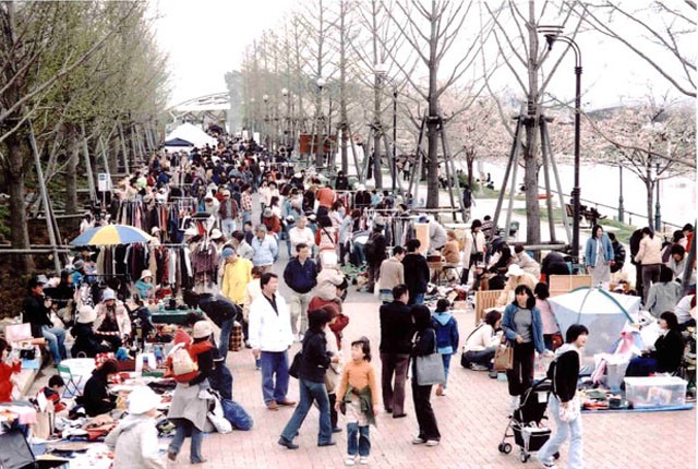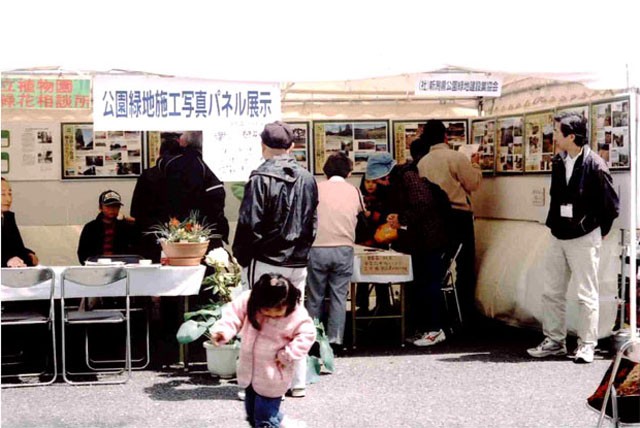 花市場(園芸相談を兼ねる)、押し花、花あそび(花冠づくりの体験)、各種施工事例、学校緑化、防災公園のパネル展示、そのパネル展示を見なければ解答できない緑花クイズ(賞品には花市場の商品券)、フリーマーケット、ハーブティーのサービス、民謡などの水上ステージショーなど、もりだくさんのイベントを企画して、連日で延べ50人の会員に、スタッフとして運営に協力していただきました。 例年になく来場者が多かったので最終日の夕方には全員くたくたになりましたが、充実した日を過ごせたことと、最初の頃と比較して、政令指定都市をめざす新潟市にふさわしいイベントになったと実感しております。