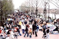 温暖化の影響で例年であればチューリップが開花する頃なのですが、今年の春先は天候不順で、ちょうどソメイヨシノが散り始める花吹雪の中で、各協賛者は、さまざまな趣向をこらしてイベントを盛り上げました。