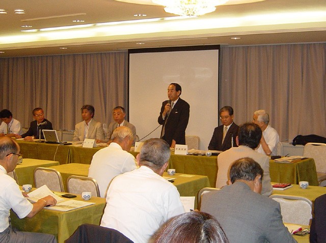冒頭、佐藤会長は、造園建設業界を巡る環境は厳しいものがあるが、21世紀は「環境の世紀」「みどりの世紀」と言われるように、景観緑三法をはじめとし「みどりとうるおいのある街づくり」を進める政策が実現するなど造園界にフォローの風も吹いている。こうした状況を踏まえ、日造協の行動指針となる「ビジョン21」を策定し、新しい時代に求められる「緑の景観・環境」を作る創造事業集団として発展を目指すこととした、日造協は日本を代表する造園団体であり、会員は一体となって新たな課題を先取りし、業界の活力拡大に取り組んでいただきたい、今後も協会活動への尽力をお願いしたいとあいさつ。