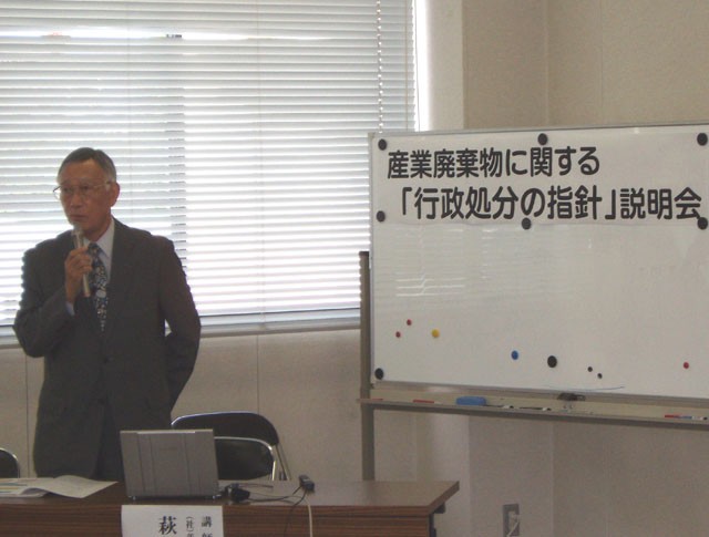 平成9年に「廃棄物の処理及び清掃に関する法律の一部を改正する法律」が成立して以来、違反行為の罰則は強化されてきておりますが、今回は環境省が平成17年に新たに各都道府県に通知を出した「行政処分の指針について」を主題として6茨城県産業廃棄物協会に講義をお願いしました。