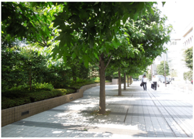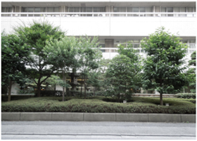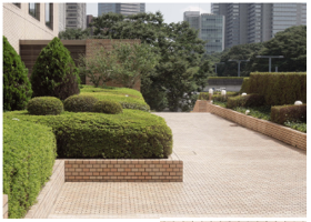 | 通行機能を持った公開空地 | 溜まり機能を持った公開空地 | 建築設備(空調設備)の遮蔽 | 建物周りの修景植栽 |