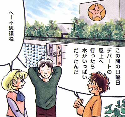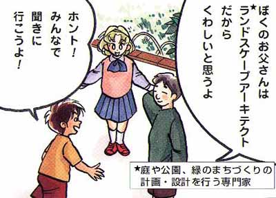 土地の狭い都市では、デパートやお年寄りの施設、学校などの屋上に木や草花を植えてみどりを増やしています。みどりや、人々に安らぎを与えるだけでなく昆虫が戻ってきたり、建物の表面温度を下げる効果もあるのですね。
