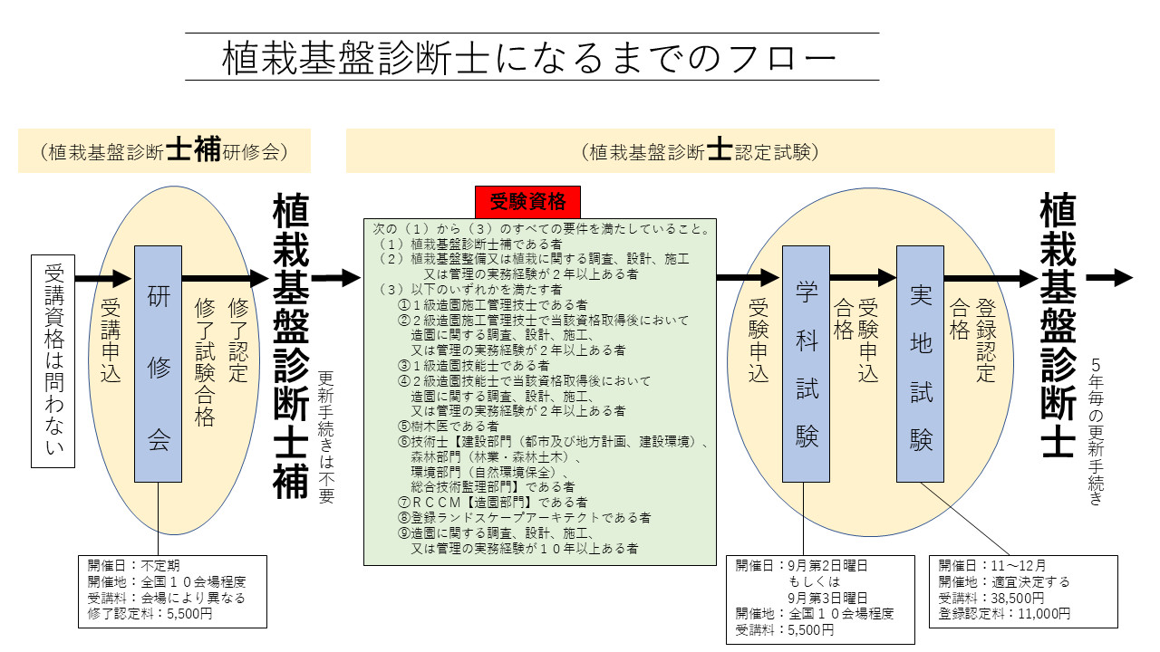 植栽基盤診断士認定試験に合格し認定登録することにより、「植栽基盤診断士」の名称を使用することができます。